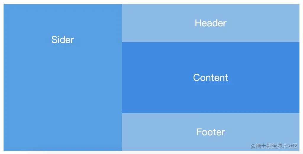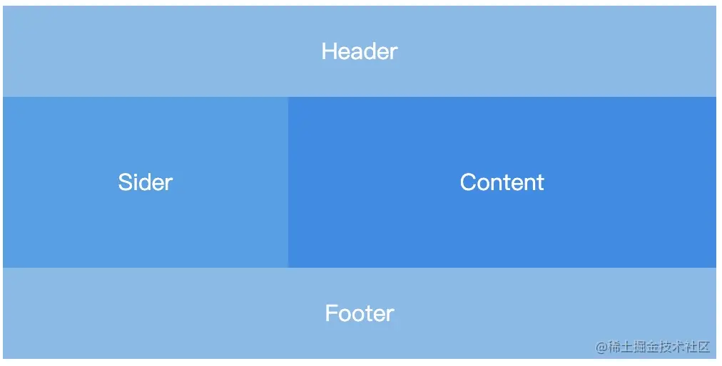 | 顶部-侧边&通栏-底部布局 | 顶部:主导航放置于页面的顶端。侧边&通栏:侧边一般放二级导航;通栏展示主内容。底部:一些网站信息放到底部。 | 上中下依旧是垂直展示,中间包含侧边和通栏两部分。中间部分将元素的flex-direction属性的值设置为row,呈现水平展示效果。 | |