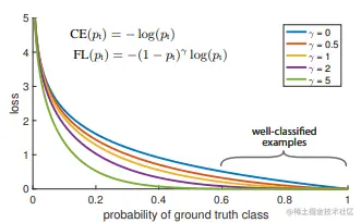 focal loss出于论文Focal Loss for Dense Object Detection,主要是为了解决one-stage目标检测算法中正负样本比例严重失衡的问题,降低了大量简单负样本在训练中所占的比重,可理解为是一种困难样本挖掘。focal loss是在交叉熵损失函数上修改的。具体改进: