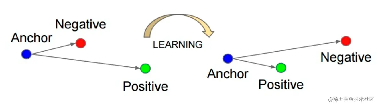 []_+相当于一个ReLU函数。三元组的构成:从训练数据集中随机选一个样本,该样本称为Anchor,然后再随机选取一个和Anchor属于同一类的样本和不同类的样本,这两个样本对应的称为Positive 和Negative,由此构成一个三元组。