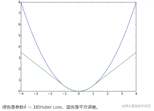 Huber Loss 结合了 MSE 和 MAE 损失,在误差接近 0 时使用 MSE,使损失函数可导并且梯度更加稳定;在误差较大时使用 MAE 可以降低 outlier 的影响,使训练对 outlier 更加健壮。缺点是需要额外地设置一个超参数。
