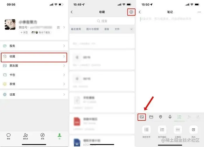 打开微信,在个人页面中找到【收藏】,点击右上角的【 + 】新建一个笔记,找到菜单栏中的【图片】选项添加自己想要发送的图片即可。