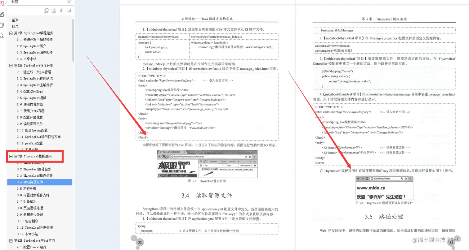 第3章Thymeleaf模板渲染: Thymeleaf 是模板技术,也是当下Web开发中使用最多的一项技术,在 SpringBoot中默认支持有此模板使用,本章将为读者讲解Thyemeleaf之中的使用语法以及与JSP语法的关联。