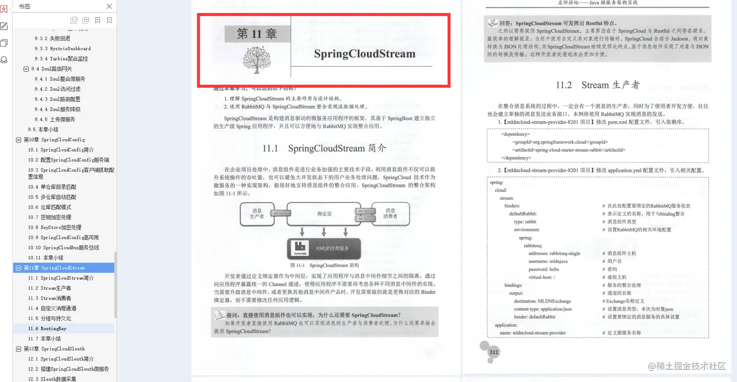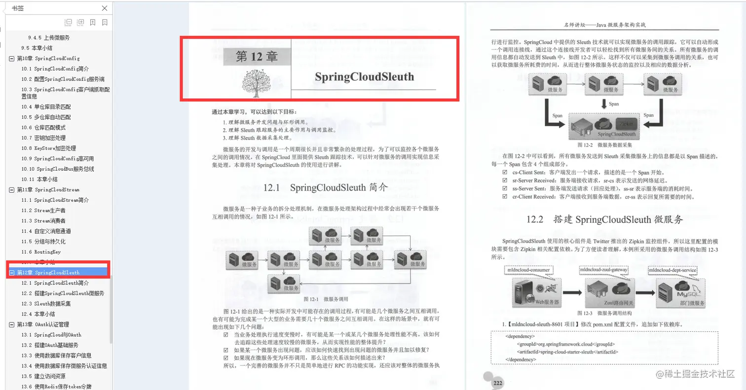 第11章 SpringCloudStream: 讲解微服务中信息采集的搭建,主要与RabbitMQ整合。第12章SpringCloudSleuth:讲解微服务调用监控跟踪、Zipkin、数据采集。
