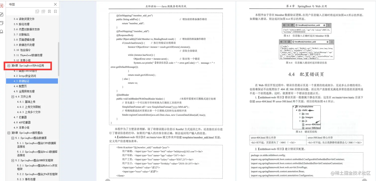 第4章SpringBoot与Web应用: 主要讲解https 协议整合、Tomcat发布、全局异常处理、文件上传等。