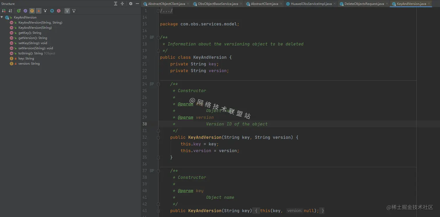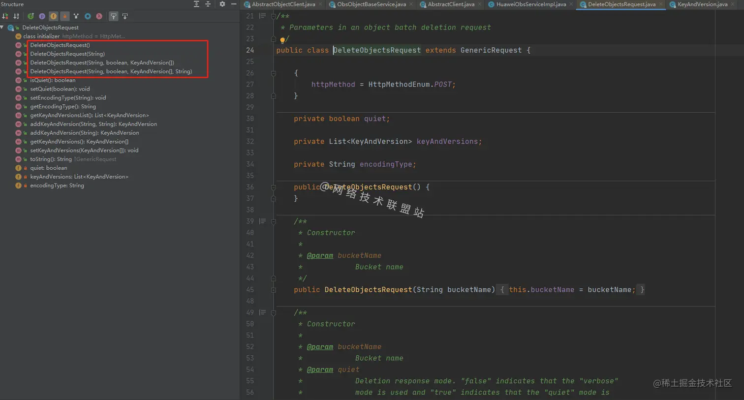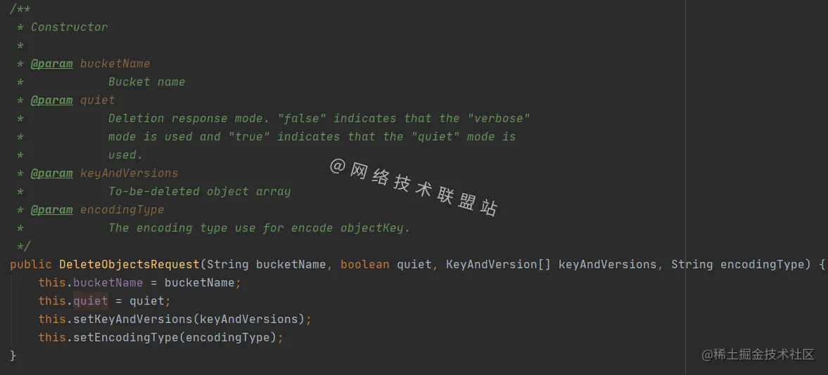 - 将组装好的keys封装成keyAndVersions对象,然后进一步封装成DeleteObjectsRequest对象;