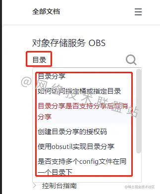 确定需求后,我们肯定首先去OBS文档中搜索一下相关关键词: