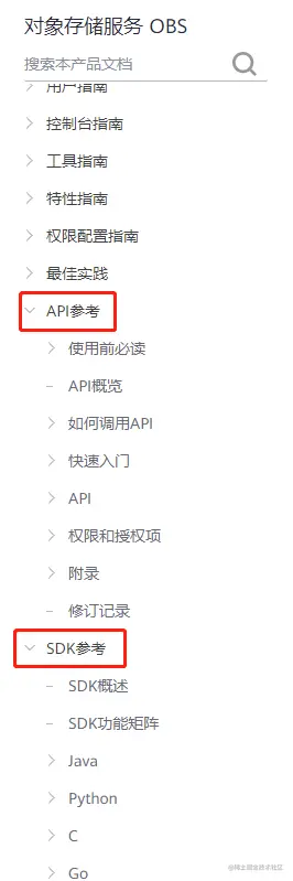 我们开发的时候,最需要看的就是其开发文档,华为OBS开发文档的地址是: