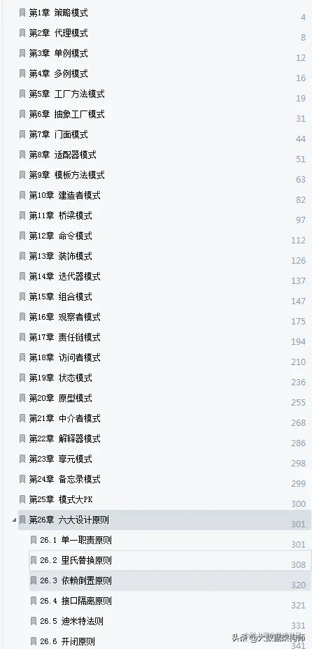 大家一看目录可能就发怵了,怎么是 24 个模式呀,一般书上都是 23 个模式,确实是,我增加了多例模式,这个一般都是融合在单例模式中讲的,我是拆出来了。
