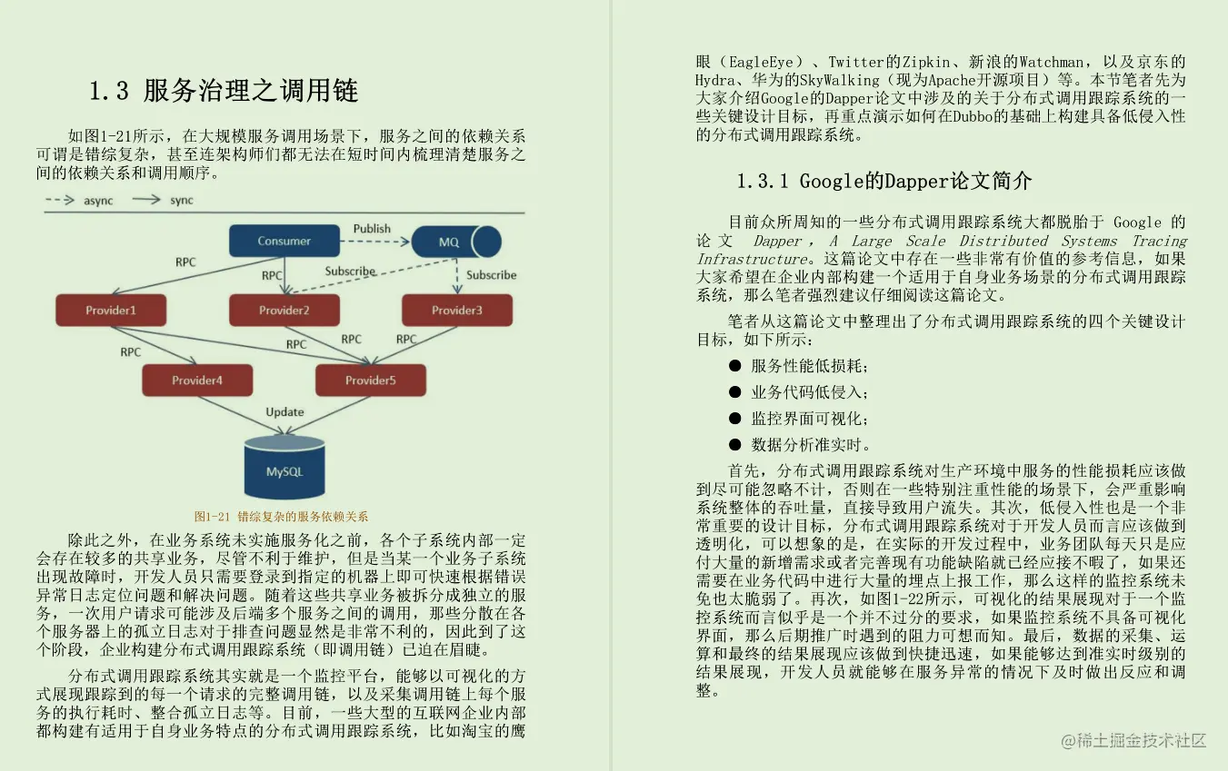 第1章以大规模服务化架构作为全书的开篇,主要介绍了分布式系统架构的演变过程,以及在大规模服务调用场景下,如何实施服务治理。