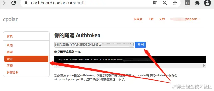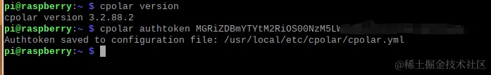 cpolar authtoken XXXXXXX(X位置为口令码内容)