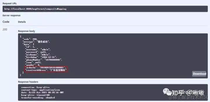 - 在Swagger中调用接口测试下,对象已经成功转换。