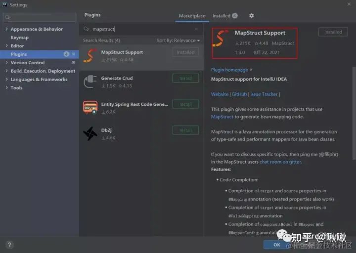 作为一款非常流行的对象映射工具,MapStruct还提供了专门的IDEA插件,我们在使用之前可以先安装好插件。