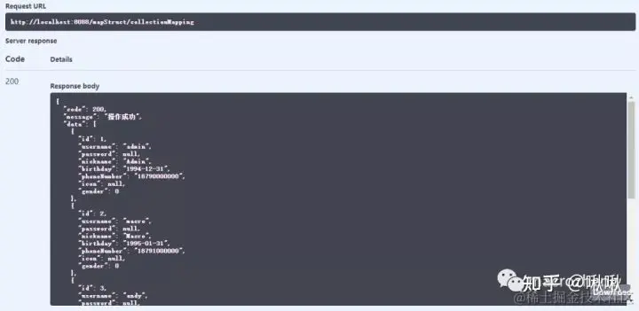 /** * MapStruct对象转换测试Controller * Created by macro on 2021/10/21. */@RestController@Api(tags = "MapStructController", description = "MapStruct对象转换测试")@RequestMapping("/mapStruct")public class MapStructController { @ApiOperation(value = "集合映射") @GetMapping("/collectionMapping") public CommonResult collectionMapping() { List<Member> memberList = LocalJsonUtil.getListFromJson("json/members.json", Member.class); List<MemberDto> memberDtoList = MemberMapper.INSTANCE.toDtoList(memberList); return CommonResult.success(memberDtoList); }}
