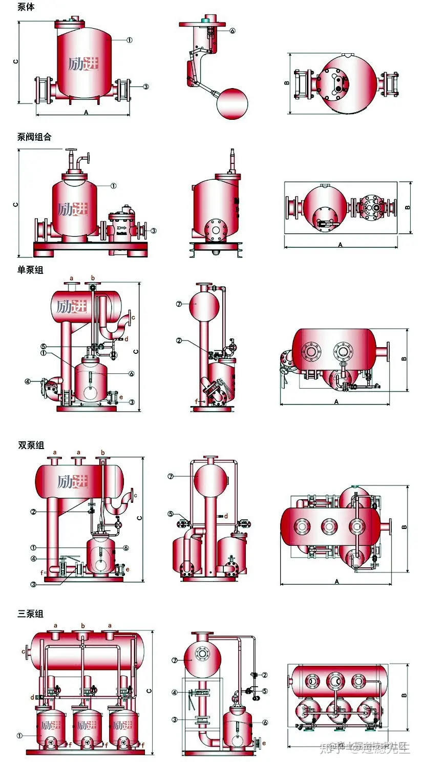 蒸汽冷凝水回收装置以蒸汽或压缩空气为动力,通常用于将冷凝水等液体提升到高位。在合适的情况下,可直接从真空或有压力的设备中排水。在与浮球蒸汽疏水阀连接使用下,可在各种情况下从有温度控制的热交换器中排除冷凝水。