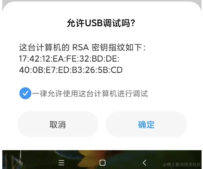 这时候下面就会出现一个提示:请在设备上接受 debugging 会话