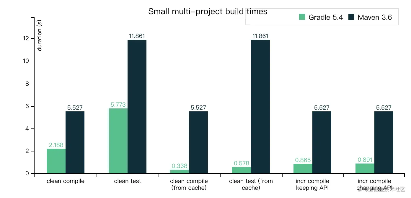 上述测试数据来自 Gradle 官方文档
