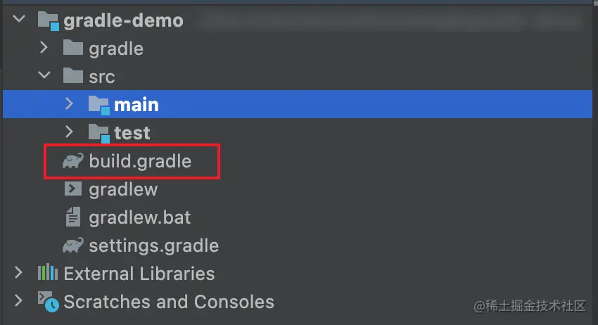 创建一个 Gradle 的工程后,在工程结构上它与 Maven 工程不一样的,主要是在 Maven 配置是在 pom.xml文件 ,而 Gradle 则是在 build.gradle。
