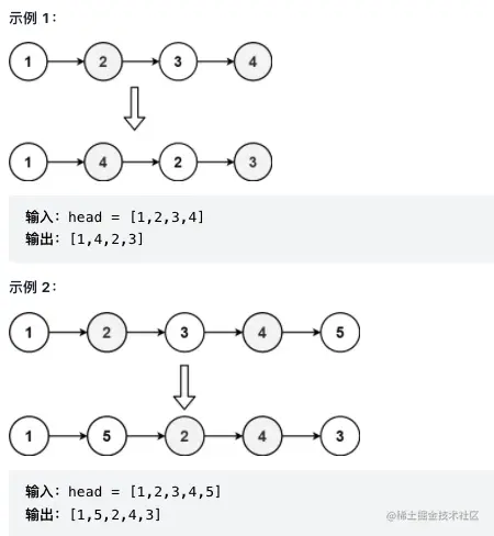 给定一个单链表 L 的头节点 head ,单链表 L 表示为:
