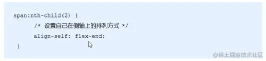 - align-self属性允许单个项目有与其他项目不一样的对济方式,可覆盖align-items属性。