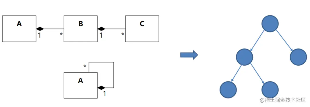 例如,图1左侧的类图就可能得到右侧形状的对象图(树)。