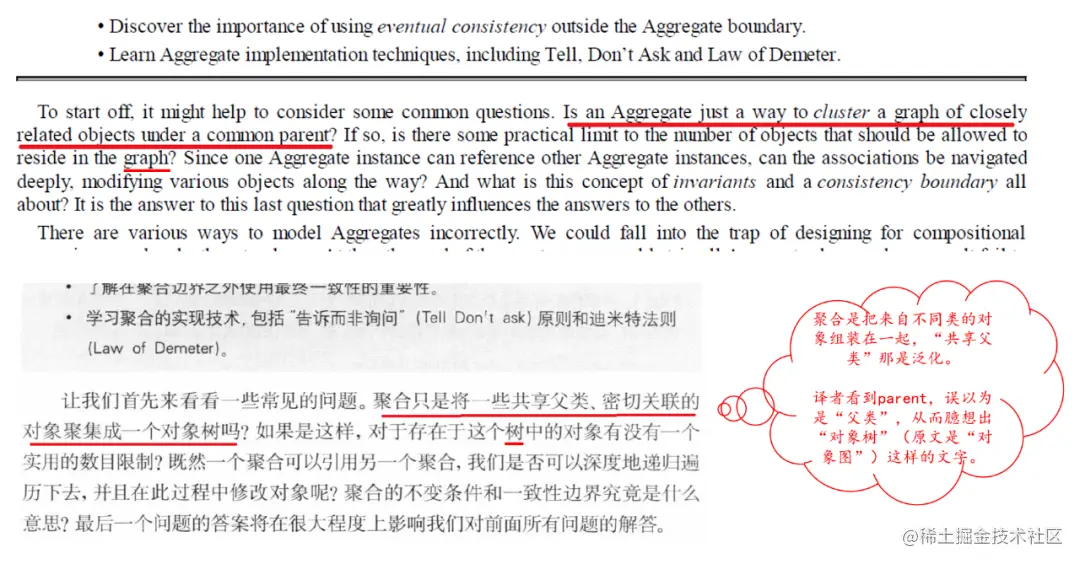 有一个地方想和您商榷,这张图上说对象树是译者的臆想,我觉得译者译成对象树也对,因为聚合根和其他对象是一对多关系,您觉得呢?