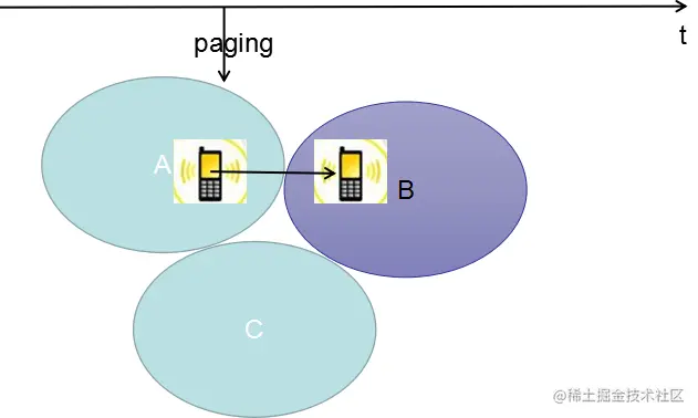 例如,小区A,B,C具有相同的Tracking Area Code,在从小区A重选到小区B的过程,读取小区B的SIB1,发现小区B与小区A的Tracking Area Code,那么直接驻留小区B。UE再根据小区B的Paging配置,在小区B上接收寻呼。
