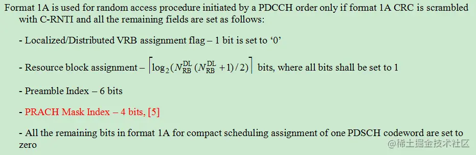 在LTE中,可以使用DCI format 1A来进行PDCCH order指示,即网络通知UE进行随机接入,DCI format 1A中PRACH Mask Index来进一步指示某些特定的PRACH资源上发送PRACH。
