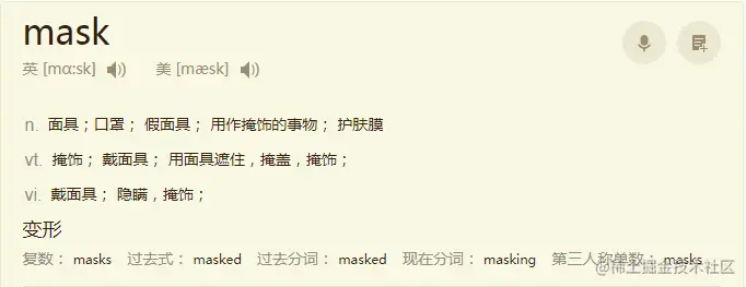 金山词霸中,对于mask的解释如下。