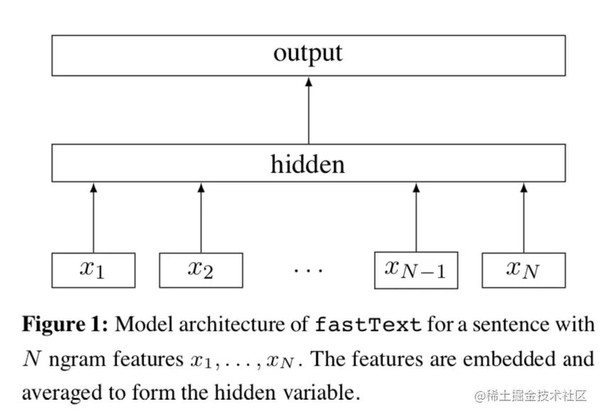 Fasttext分类模型结构很直观是一个浅层的神经网络。先对文本的每个词做embedding得到, 然后所有词的embedding做平均得到文本向量,然后经过1层神经网络对label进行预测
