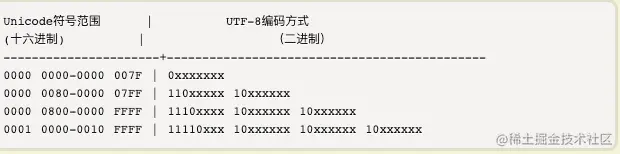 - n字节的符号,第一个字节的前n位是1,后面字节的前两位一律是10,是的此10就是彼10。