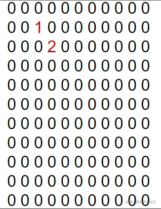 二维数组的大小来自稀疏数组的第一行第一列和第一行第二列,也就是 SparseArr[0][0] 和 SparseArr[0][1] ;初始状态下的二维数组数据全为零。