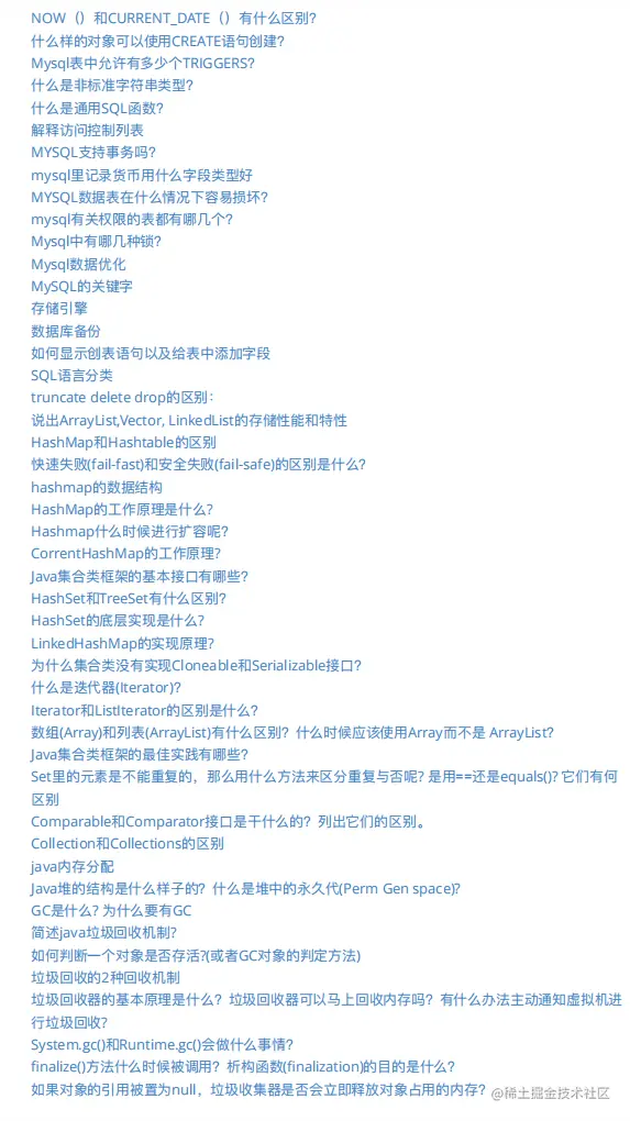 最近总结了腾讯+阿里+百度大厂Java岗高频面试题(涵盖了年薪20W—80W区间段的高频面试题),话不多说,我们直接来看题: