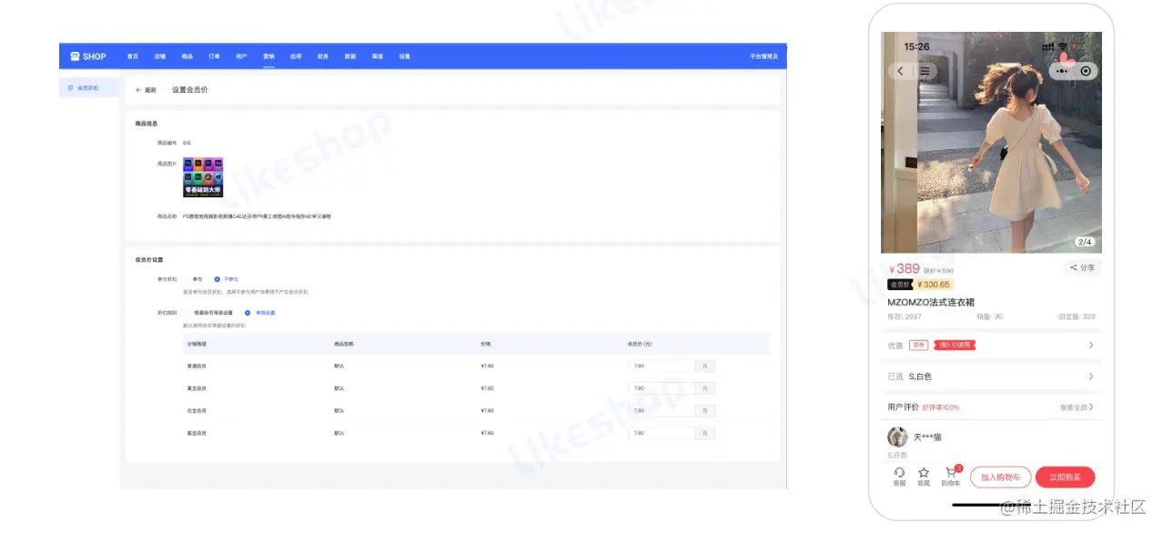 设置商品是否参与会员折扣,可单独设置会员价