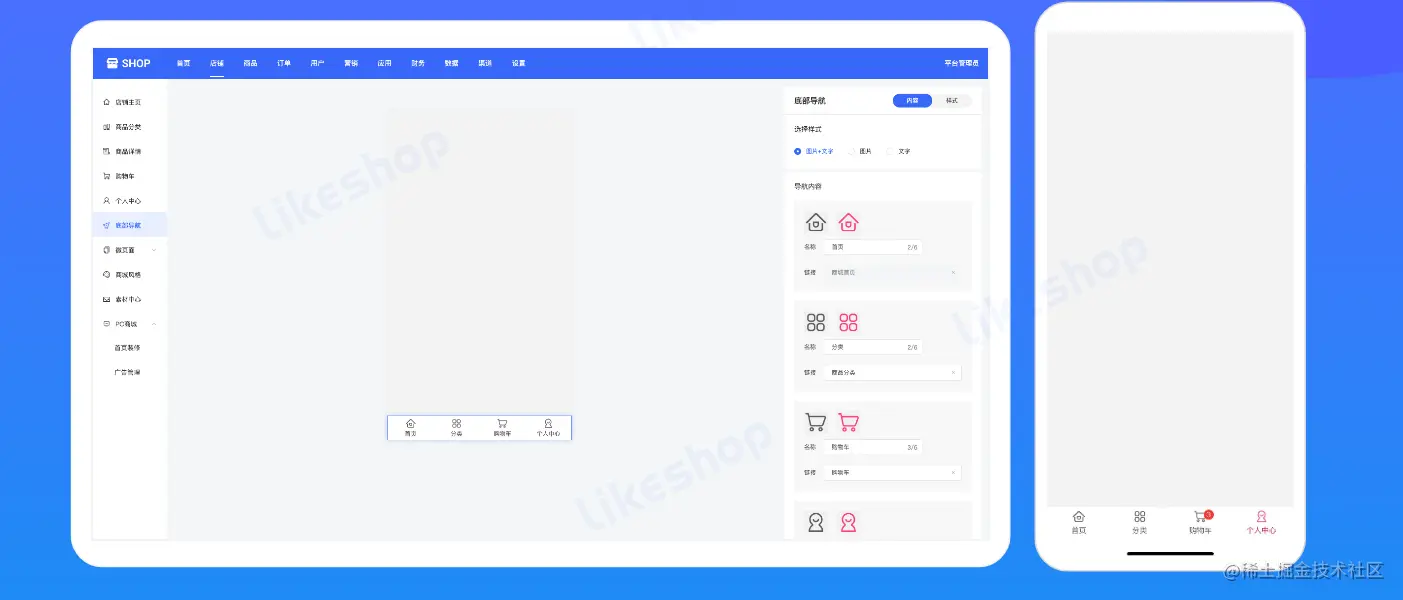 商城首页、个人中心、分类、底部标签栏等装修