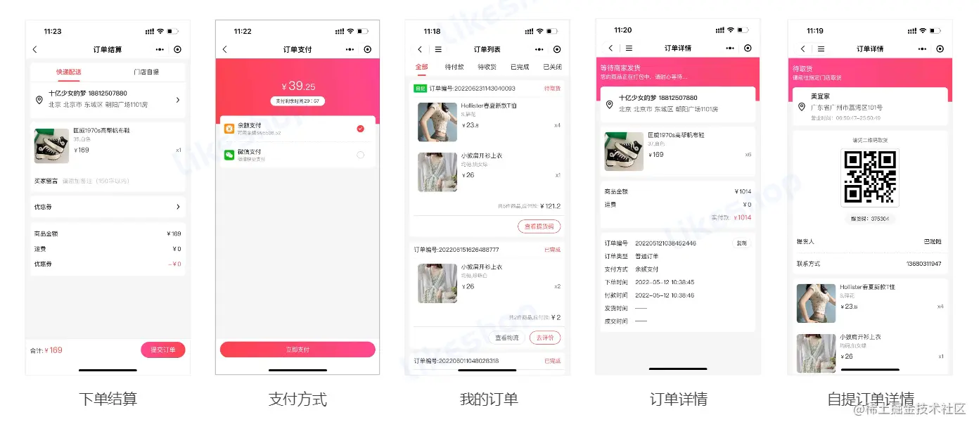 流畅的下单流程,支持商家快递配送与用户自提,满足多样的需求