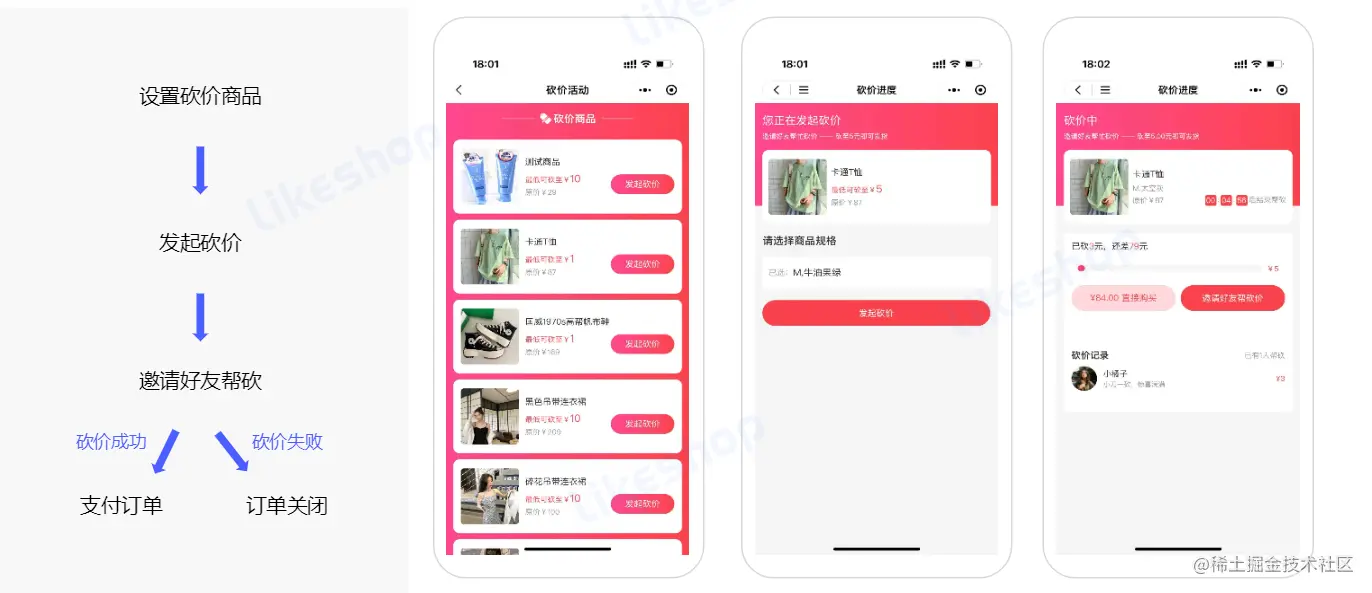 社交电商火热引流的方式之一,通过好友砍价带来大量新粉丝,同时提高商城订单量