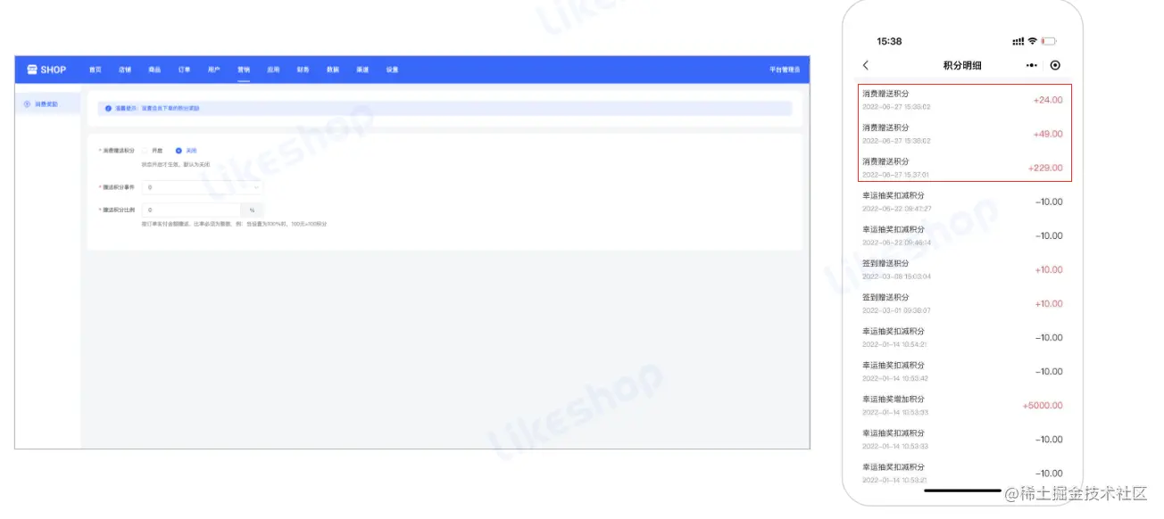 单独设置赠送积分规则,用户消费赠送对应的积分