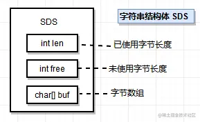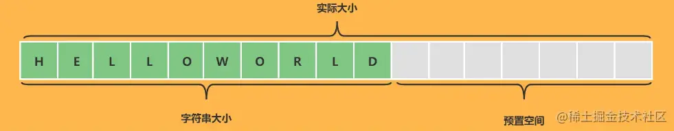 如下图中:整个字符数组就是 buf,字符串大小就是 len,而预置空间则是 free.