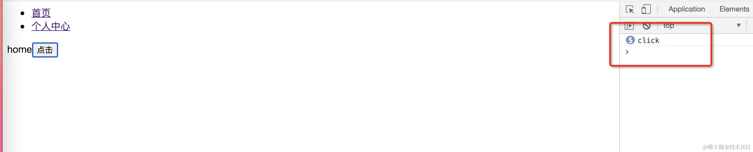 比如在 Home 组件中 添加一个点击事件