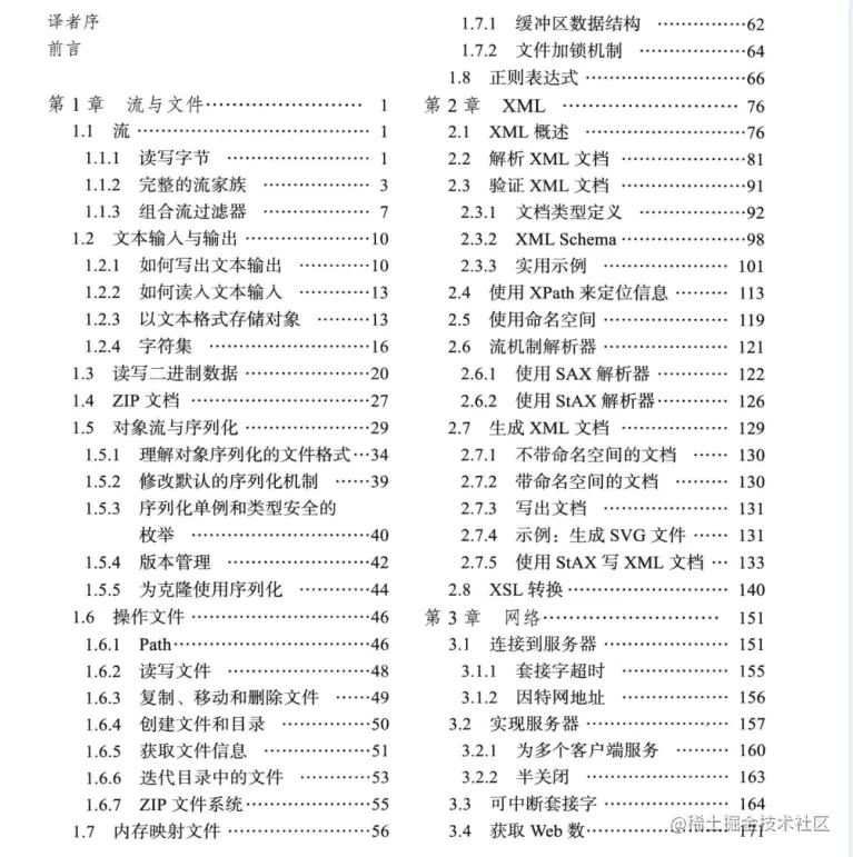 第1章的主题是输入输出处理。在Java中,所有IO都是通过所谓“流”来处理的。流使你可以按照统一的方式来处理与各种数据源之间的通信,例如文件、网络连接或内存块。我们对各种读入器和写出器类进行了详细的讨论,它们使得对Unicode的处理变得很容易。我们还向你展示了:如何使用对象序列化机制从而使保存和加载对象变得容易而方便,及其背后的原理。最后,我们讨论了Java SE 7的正则表达式和NIO2类库,它们使某些通用操作变得非常便捷,例如读取文件中的所有行。