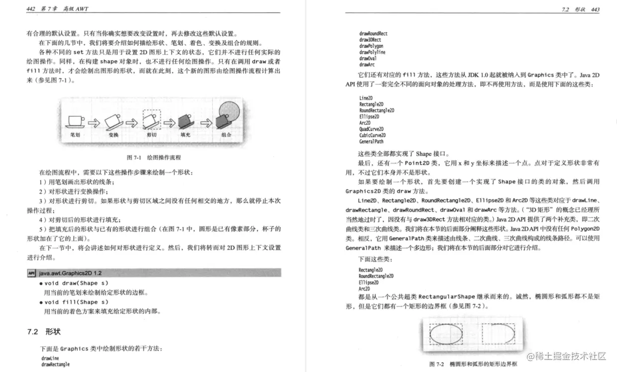 第7章介绍Java 2D API,你可以用它来创建实际的图形和特殊的效果。该章还介绍了抽象窗口操作工具包(AWT)的一些高级特性,这部分内容看起来过于专业,不适合在卷Ⅰ中介绍。虽然如此,这些技术还是应该成为每一个编程人员工具包的一部分。这些特性包括打印和用于剪切粘贴及拖放的API。