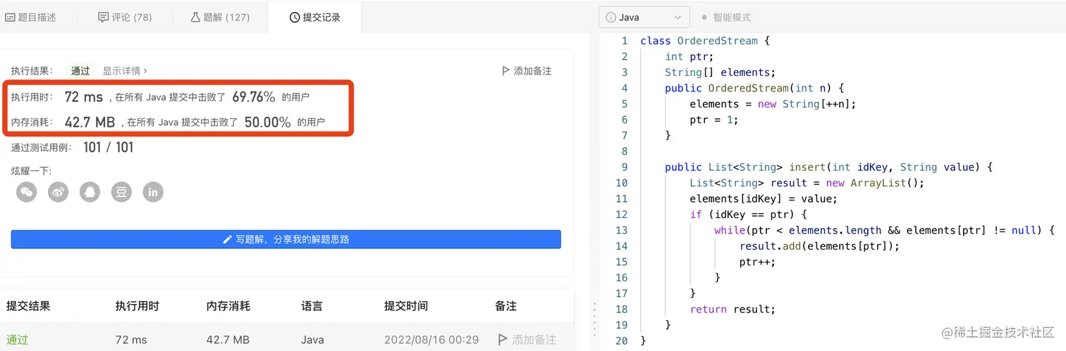 String[] insert(int id, String value) 向流中存储新的(id, value)对。存储后: