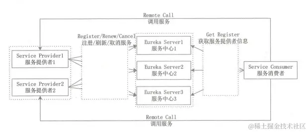 本实例将实现1个“服务中心”集群、1个“服务提供者”集群和1个“服务消费者”+XXX_WWW666666获取架构如下图所示。本实例通过“服务中心”Eureka来进行服务治理,“服务消费者”调用“服务提供者”提供的服务。