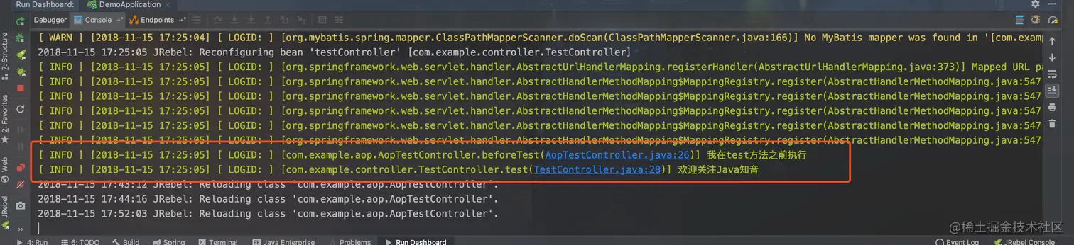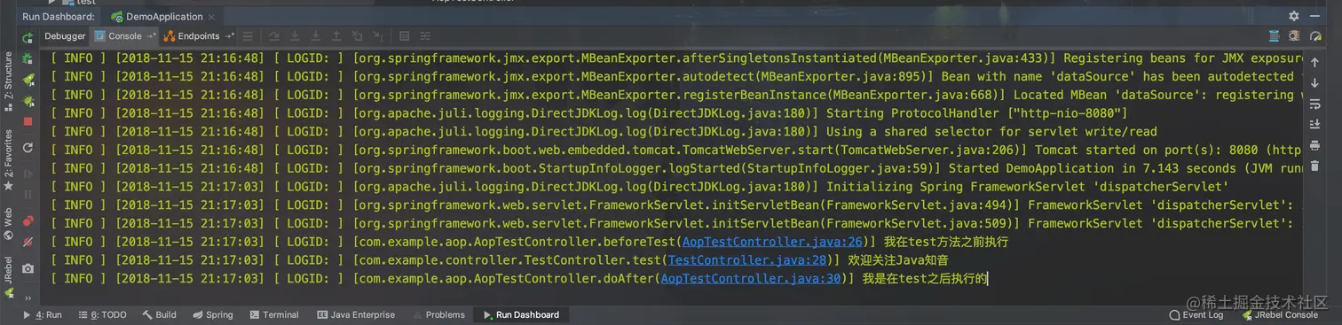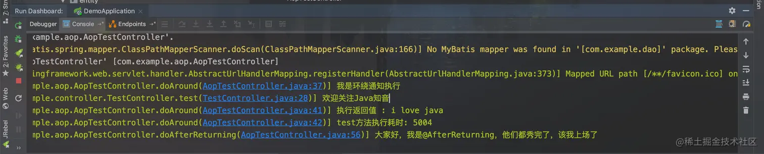 logger.info("大家好,我是@AfterReturning,他们都秀完了,该我上场了");