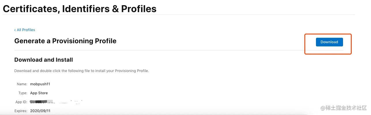 点击“DownLoad”下载Provisioning Profile