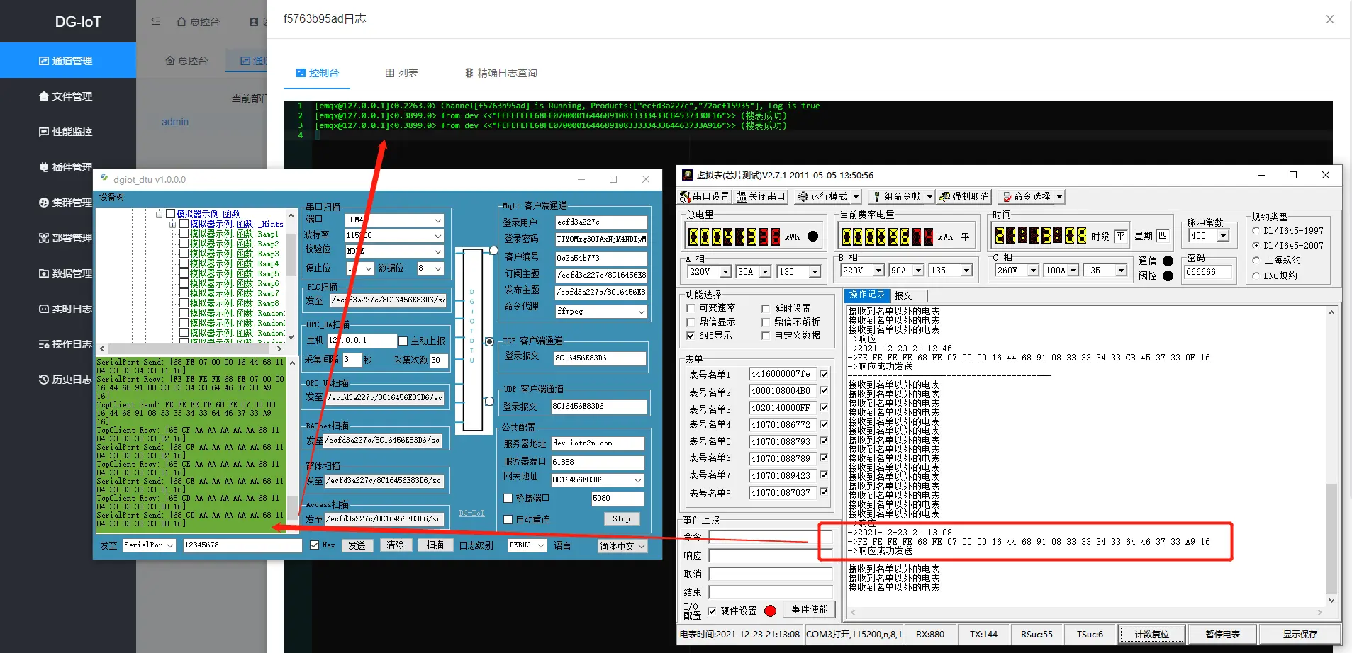 - 虚拟电表软件:用来模拟电表软件进行状态和电量上报到DTU