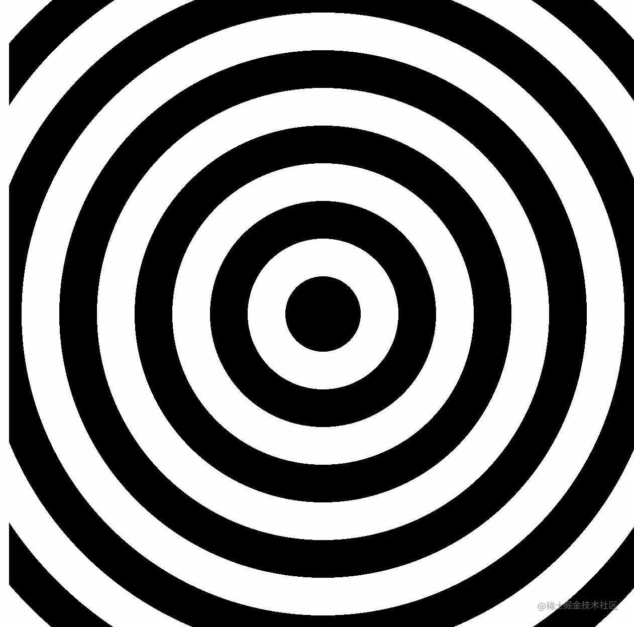 background-image: repeating-radial-gradient(circle, #000000 0px, #000000 30px, #ffffff 30px, #ffffff 60px);