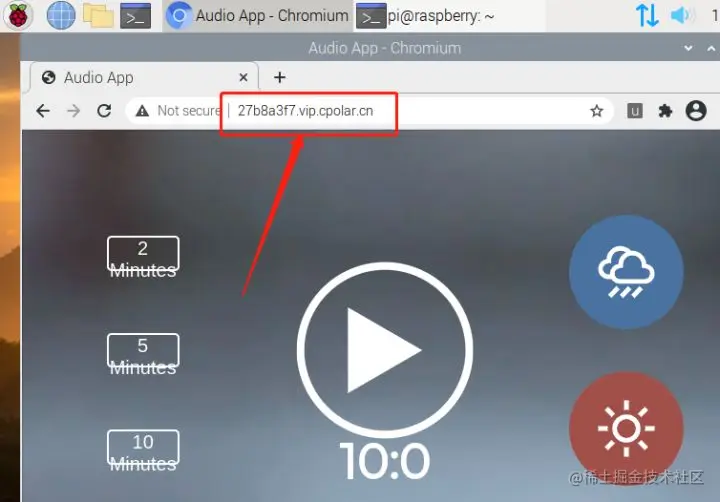而我们则可以在公共互联网上,通过红框内的网址,访问到位于家中内网中树莓派上的网页。