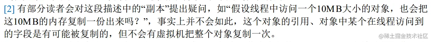 首先需要了解的一点是:数组存放在主内存中,当线程访问该对象时,会将数组引用复制一份到线程的工作内存,甚至有可能将 nums[0] 复制到工作内存中,参考《深入理解Java虚拟机》 如下叙述: