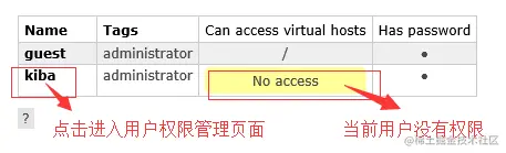 如上图所示,刚刚创建的用户还没有任何访问权限。